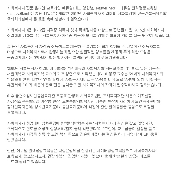 에듀윌, ‘2015년 사회복지사 취업대비 심화특강’ 성료