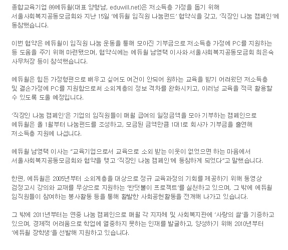 에듀윌-서울사회복지공동모금회, ‘직장인 나눔 캠페인’ 협약