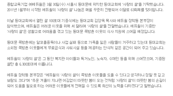 따뜻한 밥 한끼의 희망, 등대교회에 에듀윌 ‘사랑의 쌀’ 기증