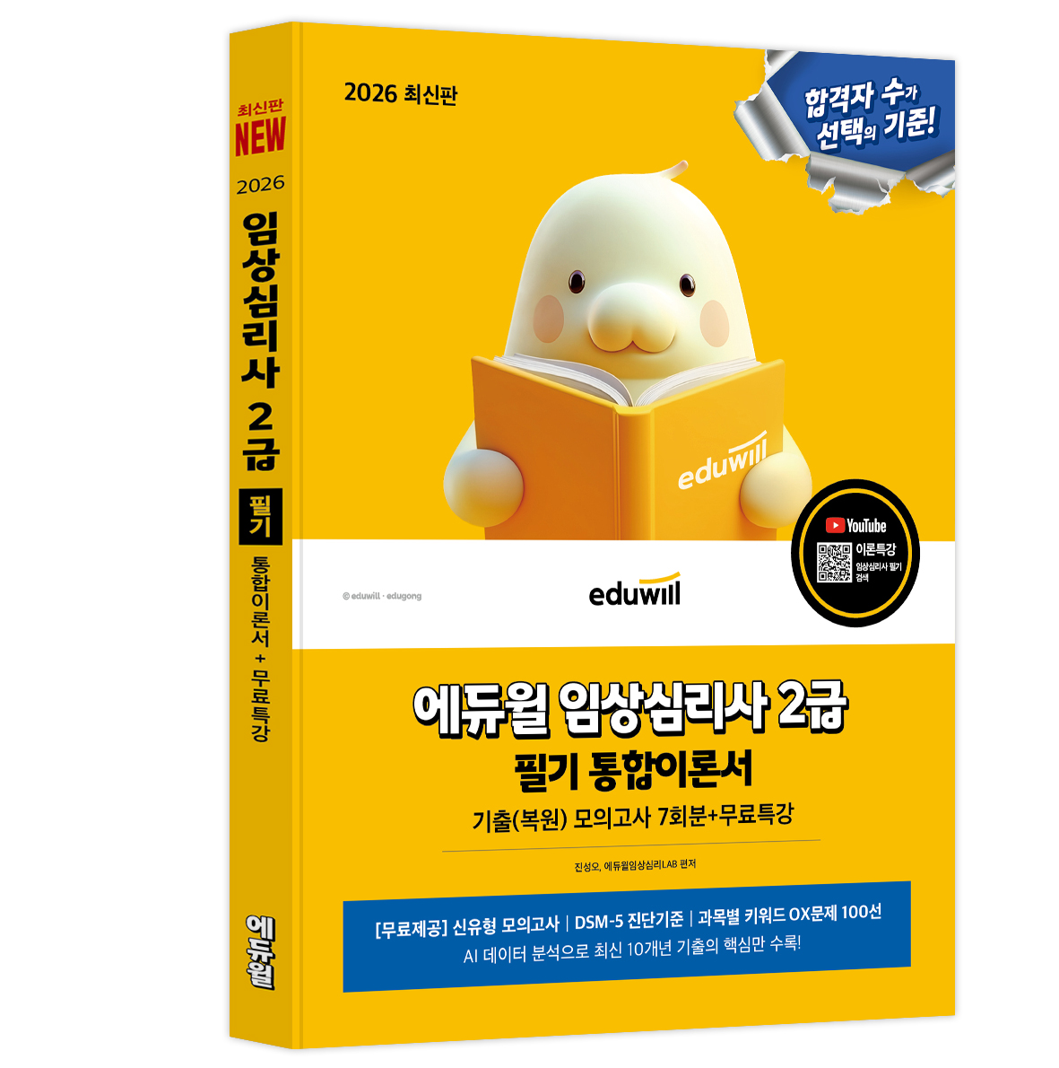 (2025-10-15) 국민교육기업 에듀윌(대표 양형남)은 임상심리사 2급 자격시험 대비 교재 ‘2026 에듀윌 임상심리사 2급 필기 통합이론서+무료특강’을 출간했다.