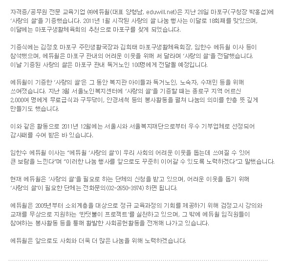 마포구에 18번째 ‘사랑의 쌀’ 기증